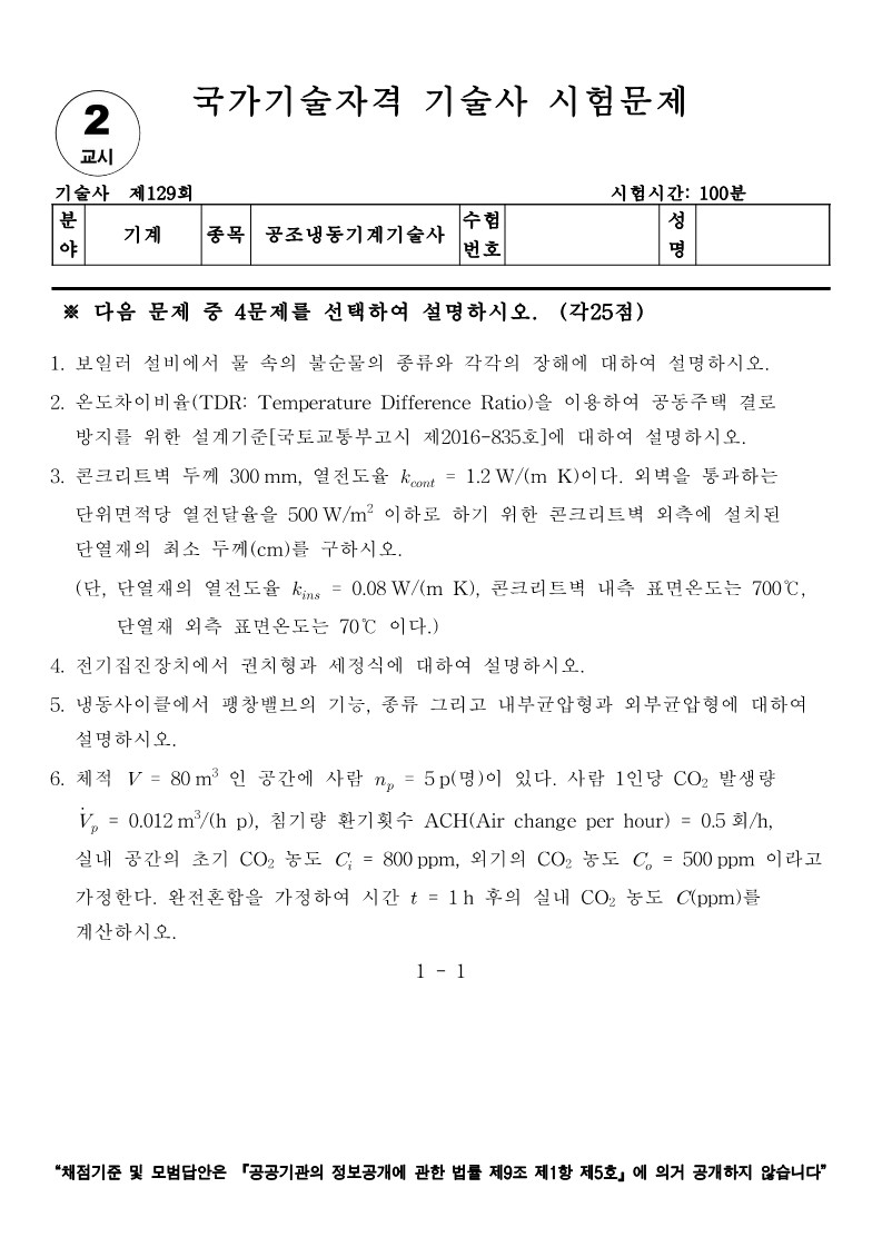 | 공조냉동기계기술사 기출문제 제132회 (2024.1.27) (1) | 2024.05.15 |