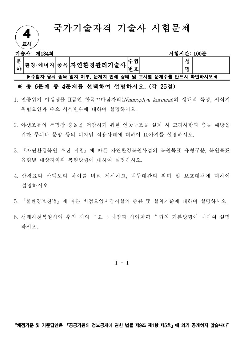 '자연환경관리기술사 > 기출문제' 카테고리의 다른 글