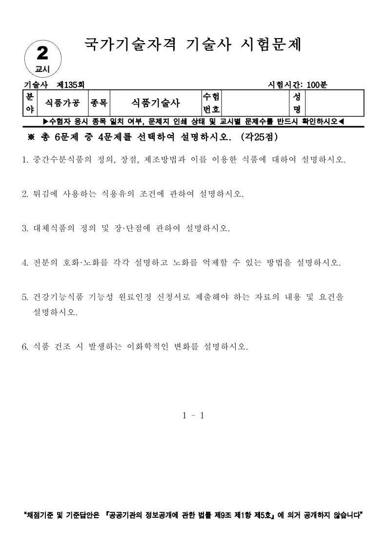 | 식품기술사 기출문제 제137회(2025.08.23) (0) | 2026.01.21 |